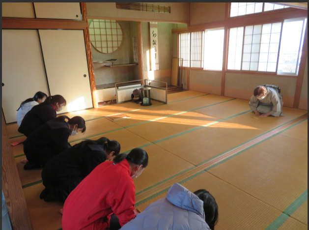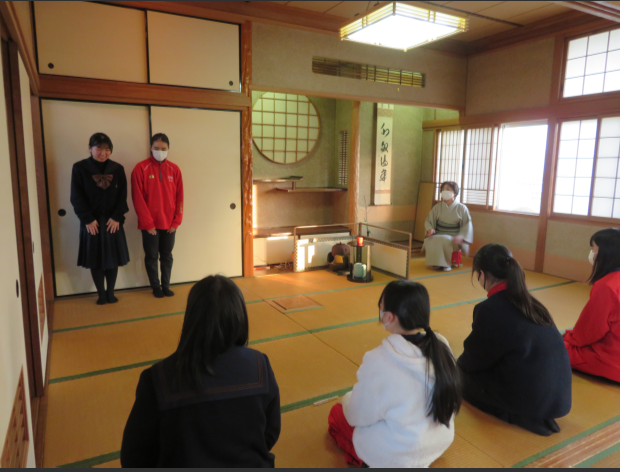 茶道部は毎週月曜日の放課後に礼法室で, 外部講師の飯田先生のご指導のもと楽しく活動しています。